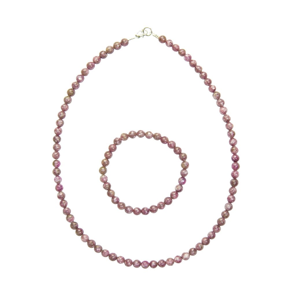 Juego formado por pulsera y collar de turmalina rosa en piedras bolas de 6mm