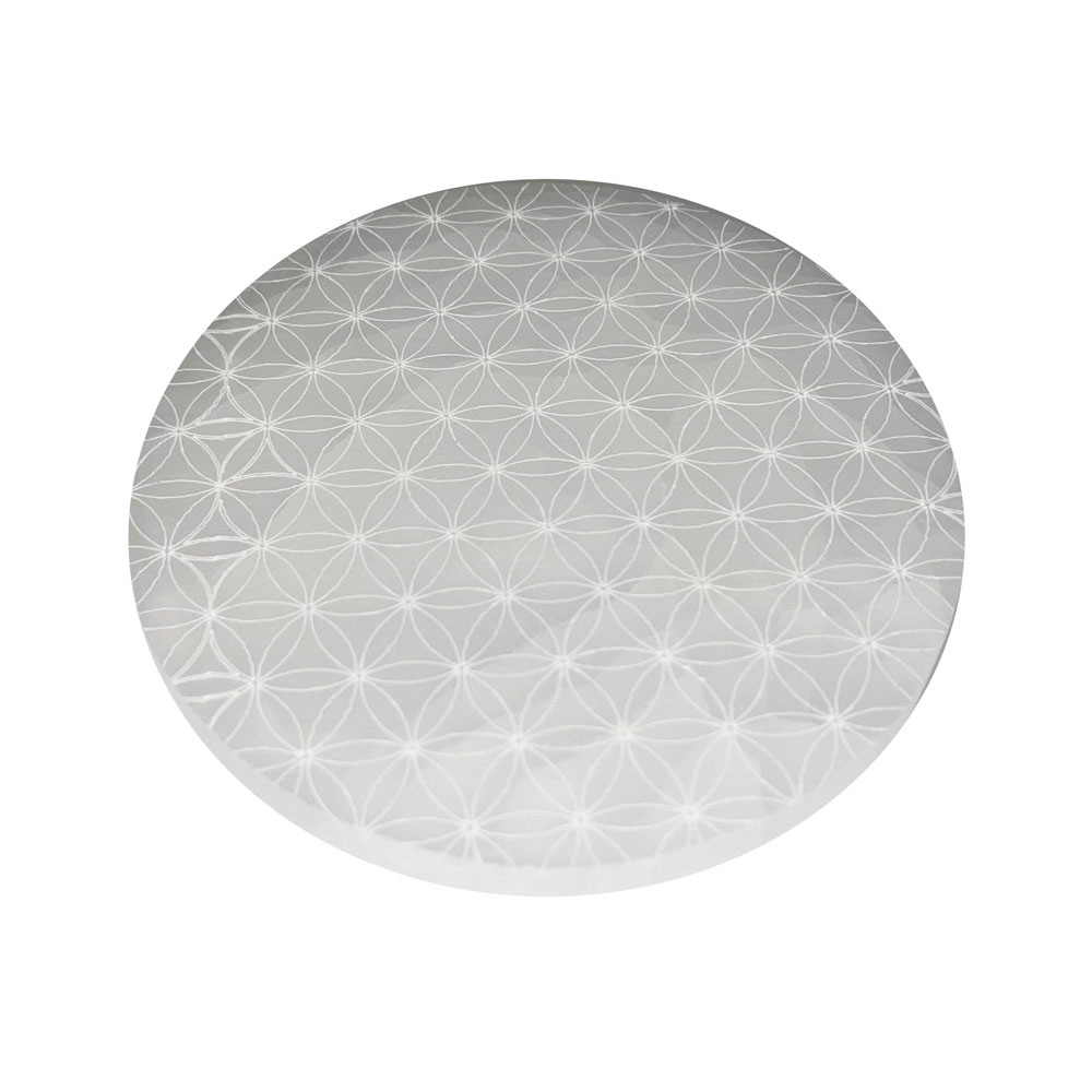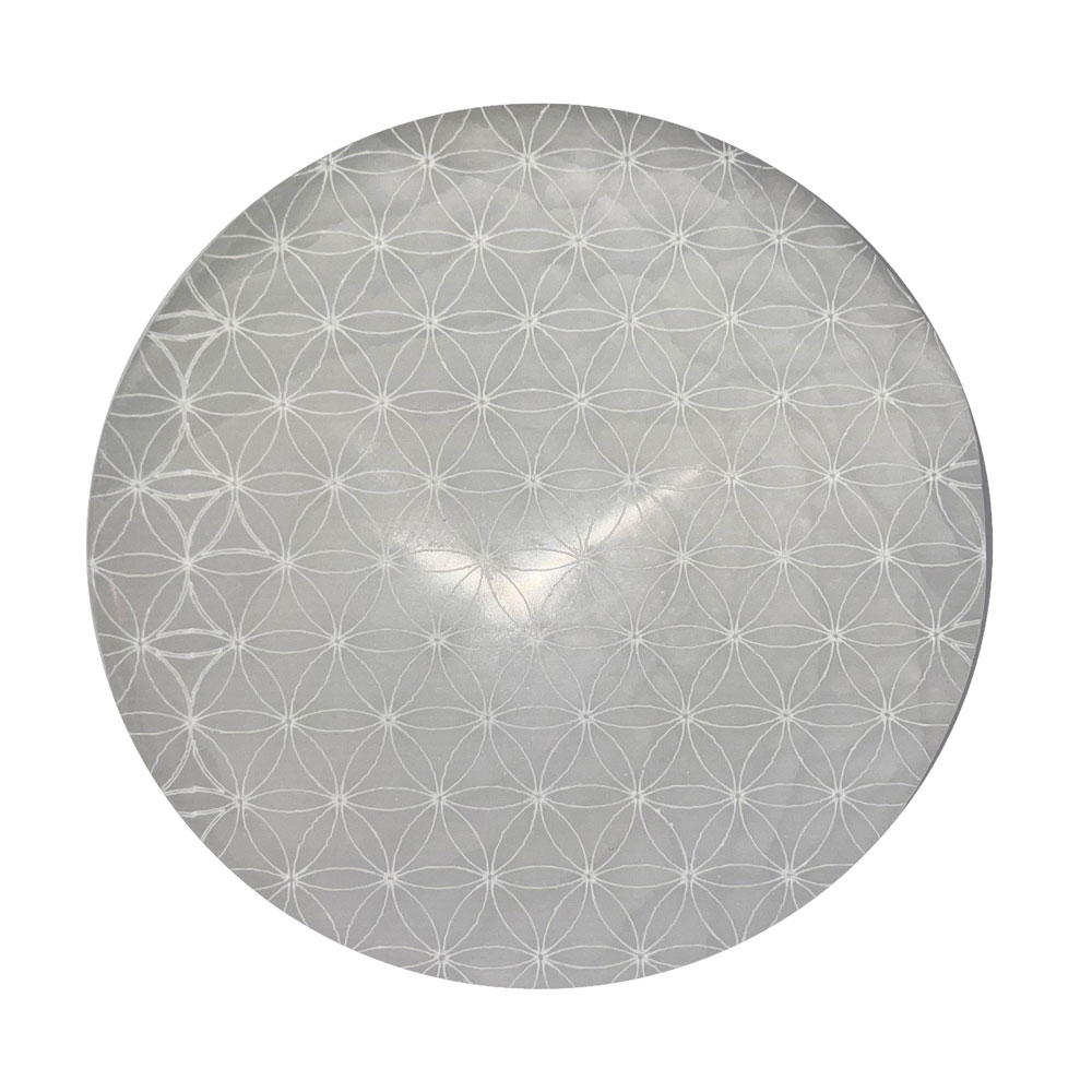 Placa de recarga Selenita – Flor de la vida – 14cm
